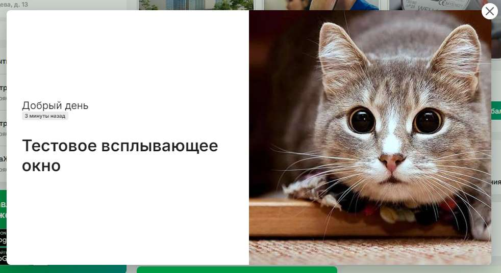 3. Всплывающее окно (Pop-up) - окно с изображением и текстом, которое единоразово появляется при входе жителя в ЛК