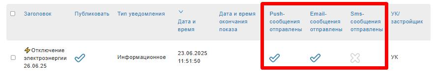 Уведомления могут быть также отправлены одновременно пользователям приложения УК и Застройщика
