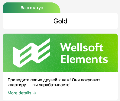 Программа Лояльности включает в себя отображение информации на главной странице мобильного приложения о статусе клиента.