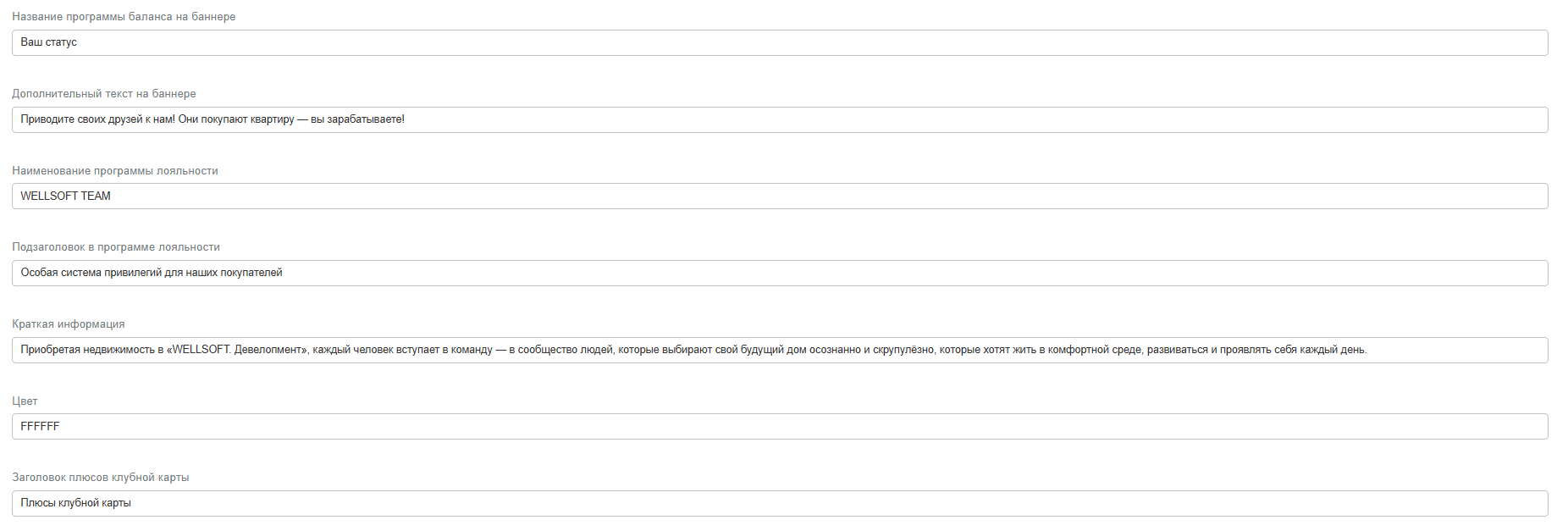 • Подзаголовок в программе лояльности
