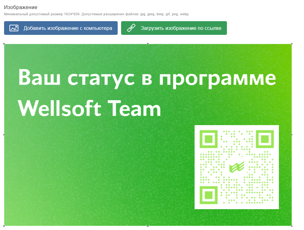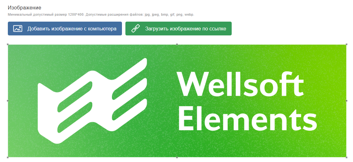 Минимальный допустимый размер 1200*400. Допустимые расширения файлов: jpg, jpeg, bmp, gif, png, webp.